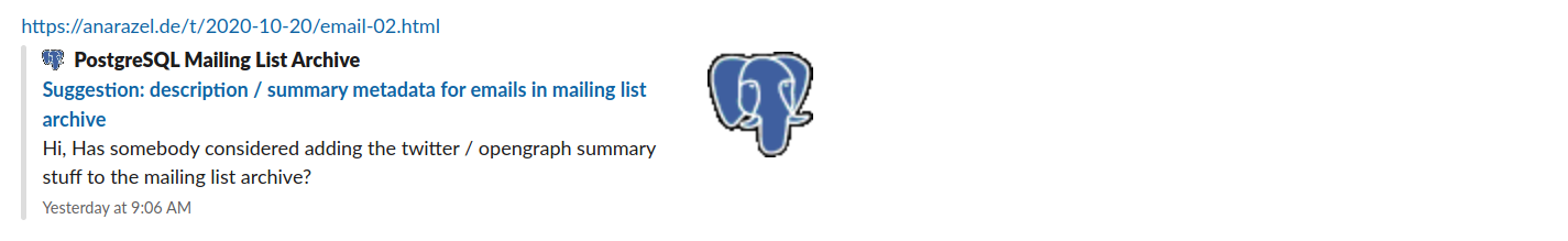 | Subject: | Re: Suggestion: description / summary metadata for emails in mailing list archive |