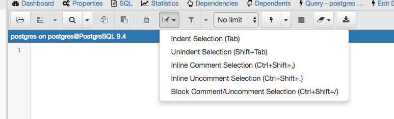 >>>>>> comment/uncomment code in query editor.