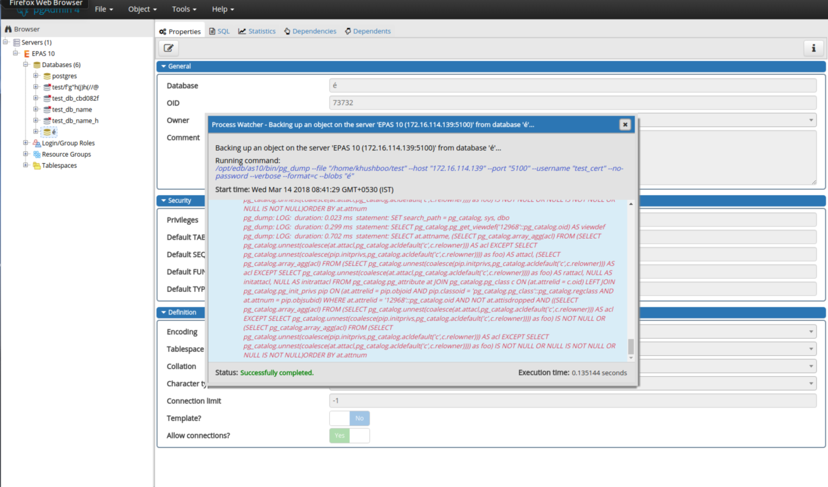 | Subject: | Re: [pgAdmin4][Patch]: RM #2963 - Backup database, Restore database and Maintenance Database failed for é object. |
